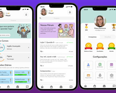 Design de telas iniciais (Home, perfil, Fórum)