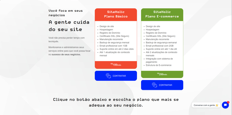 O SiteHolic nasceu como uma solução simples e acessível para colocar pequenos negócios online. A proposta é oferecer um site rápido, básico e direto, usando layouts prontos e uma assinatura mensal que cuida de tudo sem complicação.